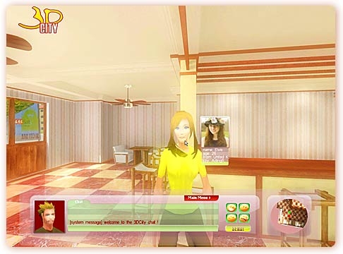 Independence from any client software: Usually if we talk about online 3d chats, virtual environments or cyber worlds, we mean no actually that they are independent. You will have to download a program that will be run on your computer and make it possible for you to walk in the 3D environment. This makes it all a bit too complicated and moreover it is quite impossible to make this 3D city a part of a community or dating site. In our 3D Chat Software it is all quite different - all takes place in an ordinary browser.