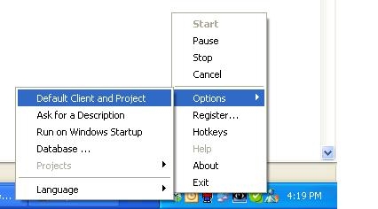 ATR Timer runs in Windows system tray and tracks your projects with 1 click - you can start, pause or stop your project just by clicking on ATR Timer icon. It can allocate your time to a specific predefined project or give you an option to choose a client and a project yourself, along with project description.