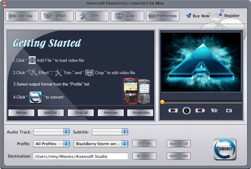 Aiseesoft Blackberry Converter for Mac is one program providing you an ultimate solution to convert video to BlackBerry and is specially devel