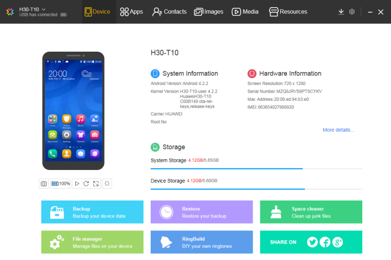 Android Manager for Windows can also customize the smartphone by providing various applications and games that you can download and install straight on the Android device.