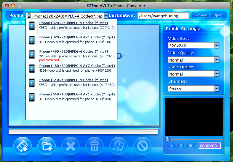 Eztoo AVI To iPhone Converter for mac an apple-pie iPhone video converter. can on Mac convert video for iPhone/ iPod, itis powerful easy-to-use video conversion software for mac. batch-convert files of AVI(DivX, XviD) into iPhone video format, extract audio files of all popular video formats into MP3, M4A, AAC for your iPhone.