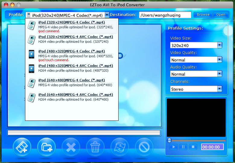 Eztoo AVI To iPod Converter for MAC is the best software which can convert avi to mp4 for mac/mac os x without interruption. Supports putting videos on various portable media players (MP4 player) such as PSP, iPod, Mobile Phone, Zune, iPhone, Apple TV and MP4/MP3 player., etc.