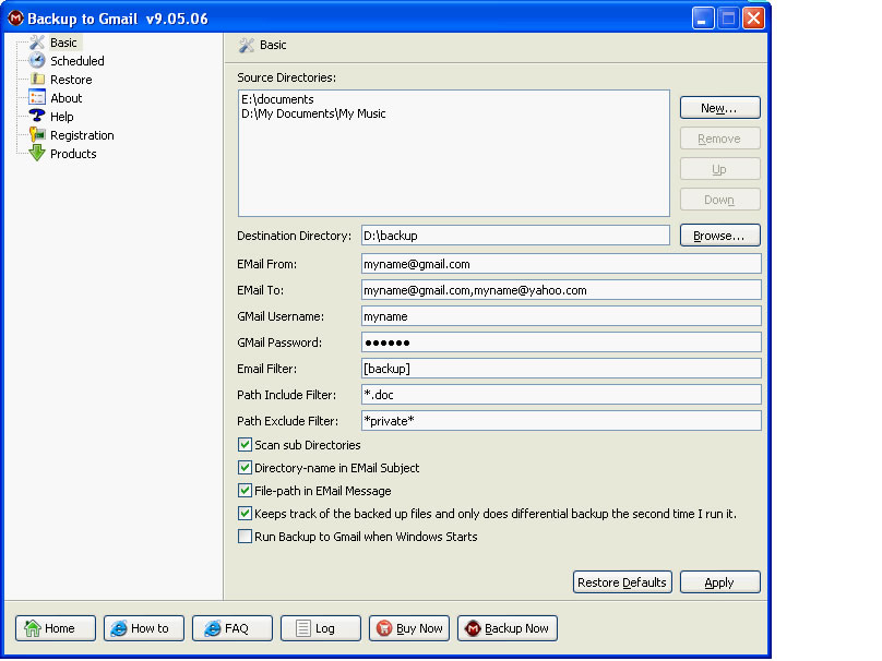 'Backup to Gmail' More features: