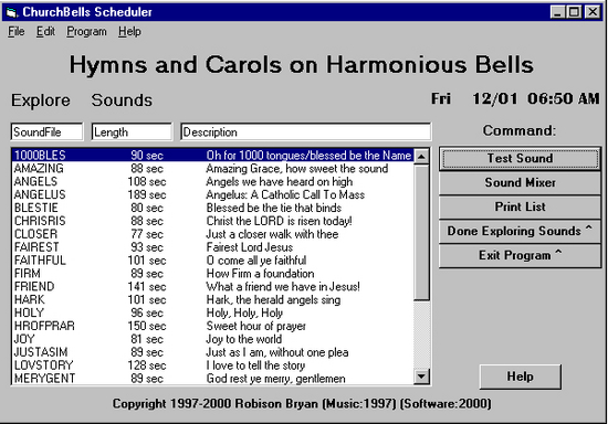 Church Bells chimes desktop system sounds suite and InspiredCode ChurchBells Carillon bell tower program. The belltower desktop sounds dont expire, and the ChurchBells program works for free every December, all month, so Merry Christmas! These free Harmonious Bells system sounds for your desktop come packaged with the same rich featured ChurchBells program used by many churches as their clock tower chimes ministry to outreach into their communities throughout the world. Whether you are considering ChurchBells for your own outreach or just want to enhance your desktop with some real jingle bells, this gift basket is InspiredCodes way of saying thank you to everyone and we wish you a very merry Christmas!