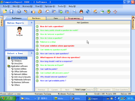 ComputerExpert 2009 is a Online Instant Q/A software committed to offering computer help and tutorials. whether you are novice or veteran, while using computer you will meet all kinds of questions such as - Why my computer crashed for no reason at all ? How can the software which I used so good before goes on strike ? Why this game can not be played over ? why so many bugs when I am programming ? whether it is software problem, hardware problem, game problem or programming problem, you can post your question at ComputerExpert 2009 and get immediate answers. Our mission is to create an international network of computer troubleshooters service experts who will provide friendly, in time, online service, support to all the computer users. It's all about sharing — what you know and what you want to know. So, why keep your gnawing questions and brilliant answers to yourself? Jump in and start sharing!