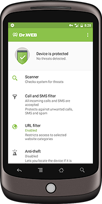 Comprehensive protection for mobile devices from all types of malicious software used by fraudsters to commit cybercrimes. Protection components: anti-virus, anti-spam, anti-theft, firewall, URL filter, Security Auditor. The users of Dr.Web Security Space or Dr.Web Anti-virus are entitled to use Dr.Web for Android FREE OF CHARGE.