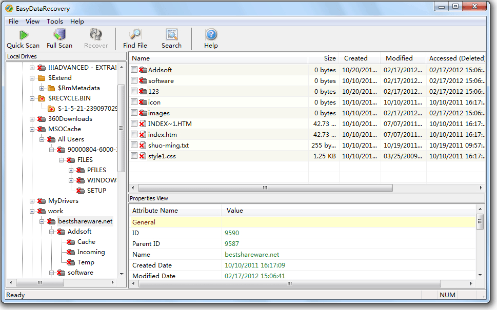 Undelete file is very easy. Recover deleted file is easy. Easy data recovery is a do-it-yourself non-destructive data recovery program designed for recovering deleted files from NTFS or FAT32 volumes. It even can recover files from formatted or reformatted disks. It can scan disc and find deleted files, formatted files, lost files and data blocks, these lost files may be deleted by mistakes, viruses, trojans, spywares, or other applications running on your PC. The software easily recovers data from hard disks, digital cameras, and any type of storage media - flash drives, USB drives, memory stick, secure digital card.