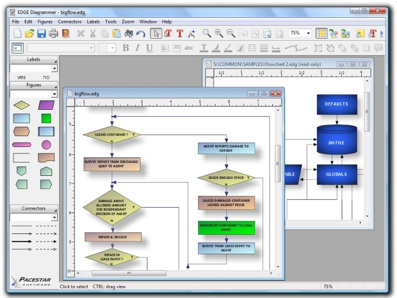 Create flowcharts and similar diagrams. Drawing boxes or symbols of many shapes and connect them with lines of various types. With full zoom, OLE, graphics import and export, curve ...
