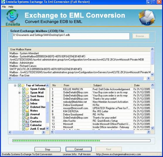 Enstella group introduce new and advance solution to recover corrupt Exchange Mailbox with the help of Export EDB to EML software. EDB to EML software easily extract EDB file from corrupt exchange database and migrate EDB mailbox to EML (Outlook Express) formatting style. Powerful Enstella EDB to EML converter program easily scan Exchange EDB files form MS Exchange server-5.0, 5.5, 2000, 2003 and 2007 which are corrupted due to some fetal errors such as:- virus attack, header corruptions, jet engine errors, any type of file size error, corruption through software and hardware failure, deletion of user mailbox etc. If you are not able to open you Exchange Mailbox due to such types of problems then try our best Enstella Export EDB to EML software which will gives you 100% assurance to recover your corrupted Exchange Database on some supportive Outlook Express(5.0, 5.5, 6.0, 6.5). Convert EDB to EML utility accurately convert exchange EDB mailbox to EML mailbox with all EDB emails attachm