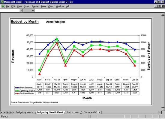 The Forecast and Budget Builder Excel is a streamlined tool for developing a 3 year business forecast and a 12 month budget. It requires minimal inputs and generates Optimistic to Pessimistic forecasts for your business. From your forecasts a 12 month master budget is built. You then have the capacity to refine this budget as required. The methodology used applies relationships between current data and relative indicators for future performance to produce a verifiable budget quickly and easily. This forecast and budget tool can be utilized for existing and proposed businesses, products, or services. Outputs include a 3 Year Forecast with Sensitivity Analysis, and a Budget by Month in tabular and graphical form.