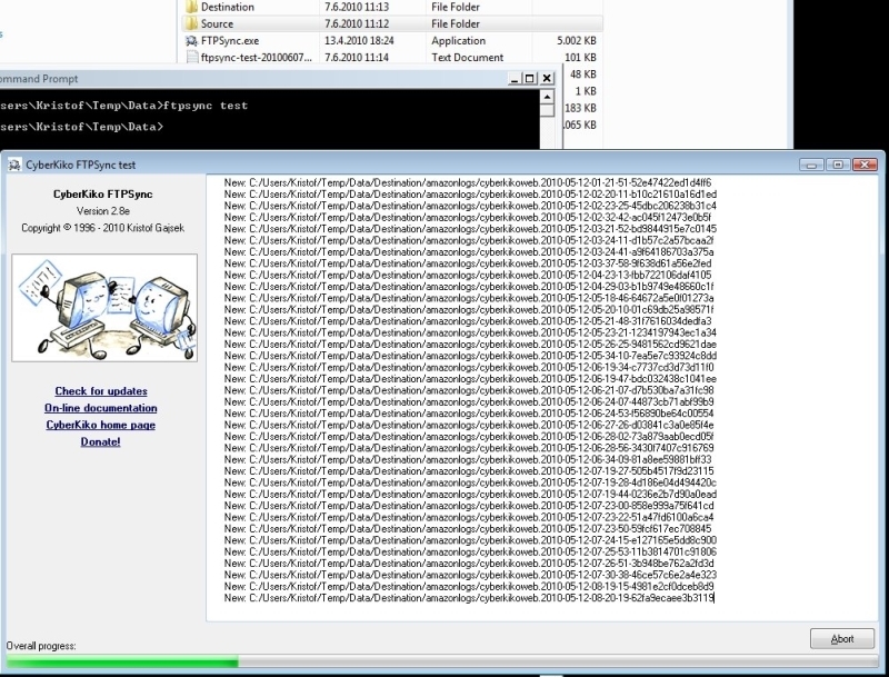 Synchronize two FTP sites or local directories. FTPSync is useful for updating your home page or corporate web site, maintaining an off-site backup, maintaining web site mirrors, etc.