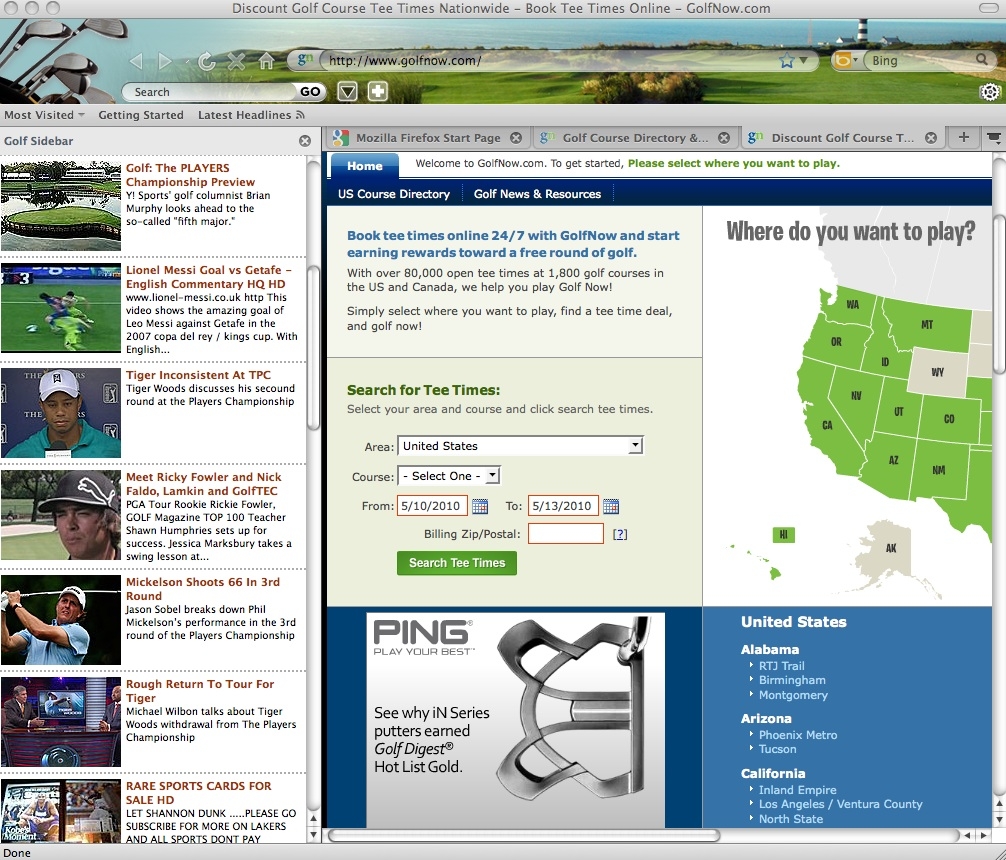 Bring some golf to your browser with this theme for Firefox. Includes a beautiful theme and some great functionality including a tool to reserve a tee-time at your favorite course.