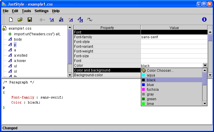 JustStyle CSS Editor provides an interactive user interface and presents CSS properties in special wizards and generic values lists.