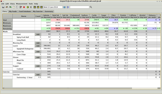 JXCirrus CalCount is a food and exercise diary designed for people who are in the process of losing weight, tracking their exercise, or just want to watch what they are eating.