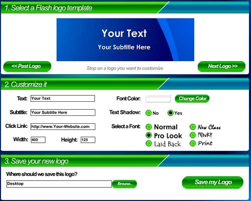 With LogoWizard, you can make an animated Flash logo that also features your slogan, colors, and a webpage you can go to when you click on it.