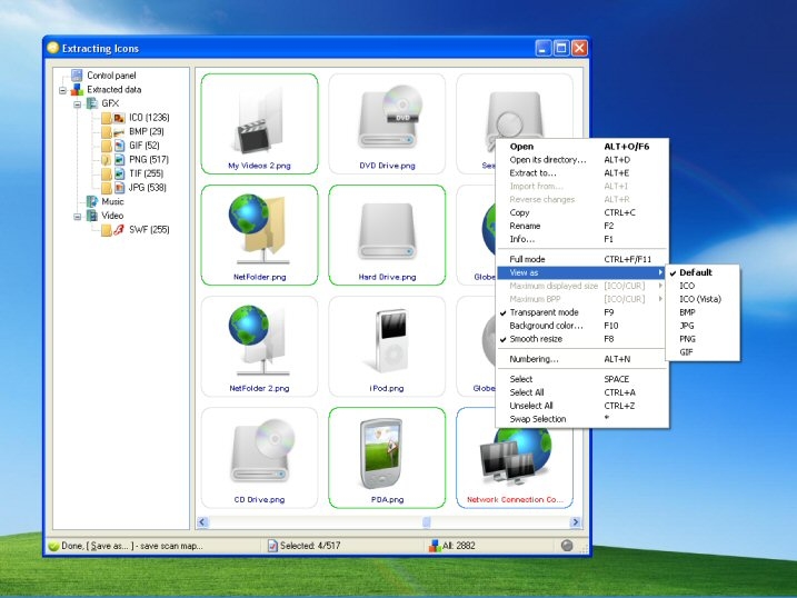 Recover data from phone, extract pictures from slideshow (photodex), grab icons. This tool allows users to 'look' into files and folders, explore and extract hidden elements, such as images, audio, video, icons, and textures, all from within a minimalistic and easy-to-use interface.