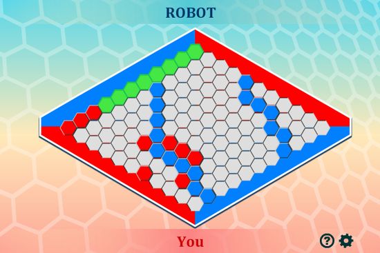 This is a classic strategy board game created by the American mathematician John Nash, and your goal is to use hexagonal tiles to construct a path that links the two opposite sides of your color before your opponent does so. When the game starts, you will be given a grid consists of numerous hexagonal spaces. Two opposite walls of the board are in red color, while the other two are in blue. You and your opponent will be assigned either one color. Then both players will roll a die to determine the turn order, and the player who gets a larger number can move first. During your turn, you can click to place a hexagonal tile of your color onto any empty space on the grid. Note that you must finish your turn within the given time limit, as indicated by the timer on the screen, or you will lose. When the two opposite walls of your color are connected by your tiles, the game is won. Since it is unlikely to end in a tie, you must find your winning strategy in this mathematically determined game