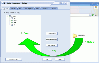 My Digital Screensaver slides show your digital photos with more than 100 transitional effects. When photos are slide showing, a lovely digital elf tell you all the secret in the digital photo: Where have you taken the photo. What camera you have used. What configuration you have set.