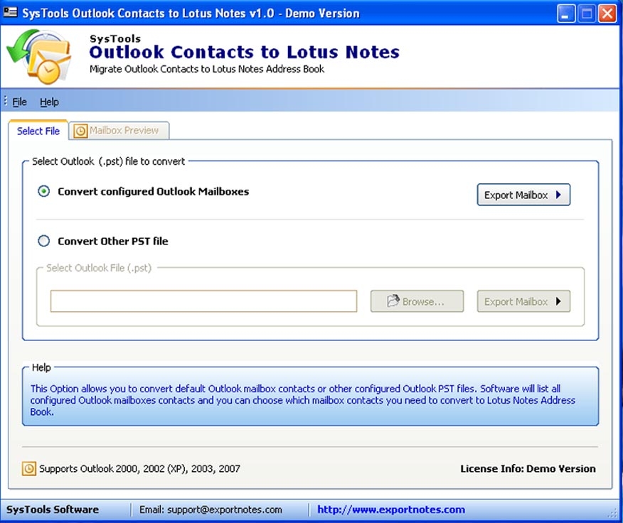 Have you unlimited Outlook contacts and want to convert it in Lotus Notes with a single click? Now Switch PST Contacts to Notes become possible with Outlook to Notes Contacts Switching tool. Outlook to Notes Contacts Switching is the simple way to convert unlimited Outlook contacts to Lotus Notes. However, it can be possible with third party tool because MS Outlook offers export option for one by one contacts conversion. Using MS Outlook we can convert one contact at a time. It will be very cumbersome to convert one by one all the contacts. So that there is an easy way to convert the entire outlook contacts to notes. Outlook to Notes Contacts Switching Software can help you to switch the entire PST Contacts to Notes at a time. Always remember that before using this software, you must have to install any version of Outlook and Lotus Notes such as MS Outlook 2010/2007/2003/2002/XP/2000 or 97 and Lotus Notes v8.5 or v8.0 or v7.0 or v6.5 or v5.0 otherwise is will give an error message. The