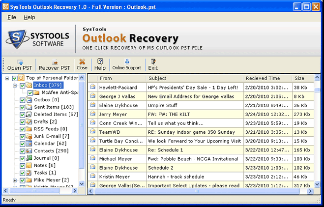 Repair your corrupt PST file with the reliable SysTools PST Repair Tool. Recover Outlook mailbox and other mailing data. Repair Tool easily recovers all deleted Outlook mailbox ite ...