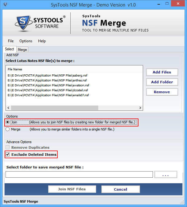 NSF Merge tool is the only tool launched by Securasoft Company to merge Lotus Notes Archive or NSF files. This way user can manage all the NSF files at single place and get rid of misplacing them. Lotus Notes is highly used by professional for e-communication and it saves its entire database in NSF file format. NSF Merge tool covers all the Lotus Notes items to consolidate data like Inbox files, Outbox, Contacts, Calendar and Task etc. into single file. With this Lotus Notes Mail Merge tool one can remove duplicate data and deleted items from the resultant NSF files. Download the Freeware of NSF Merge tool and Merge 15 items of Lotus Notes and 2 NSF files without paying single penny. Once you get the satisfactory result from the software you can upgrade its version from free to full and merge unlimited NSF files in $129 only.