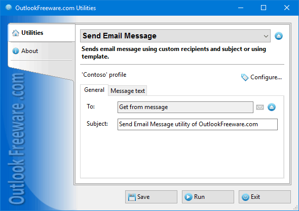 Thanks to the support of macros, the utility significantly enhances Outlook templates. Macros are special words in message subjects and texts that are replaced with the values of message fields, the current date, or Windows environment variables when sending. When configuring the utility, if you specify mes