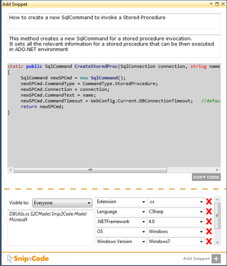 If you are in a software team, you can convey the best practices and guidelines of your team(s) in a centralized store, always available from everywhere, with a complete set of tools to manage the editing/viewing privileges in a hierarchical way: with Snip2Code, your software product lifecycle will be shorten by a 20% in terms of delivery time and developing costs. And the knowl