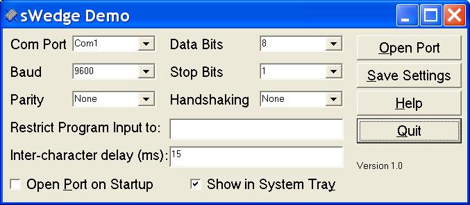 sWedge is a small program that allows you to convert data sent through the serial port to keyboard data, as if it was typed into the keyboard. This allows you to use Bluetooth devices, barcode scanners, cheque readers, magnetic stripe readers and even other computers to input data as if it had been typed, saving you time and giving better accuracy than typing. There are a number of options available in the program to make it more flexible to better meet your needs.