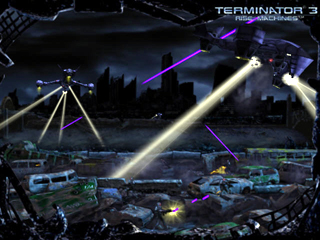 Imagine, a real-time battle field on your screen. An apocalyptic Los Angeles in the year 2029 with nuclear fallout, a skyline of ruins, and the constant distant throbbing of war. Your view is like a fighter of the human resistance, hiding in your makeshift bunker, as if on watch, peering out into the nightmare that is the future of a Terminator®3 world.