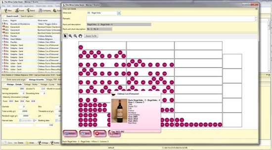 Wine cellar management PLUS an International wine guide. Cellar management includes 30 fields per record (10 user definable), Visual rack display, Customizable display and Reports, ...