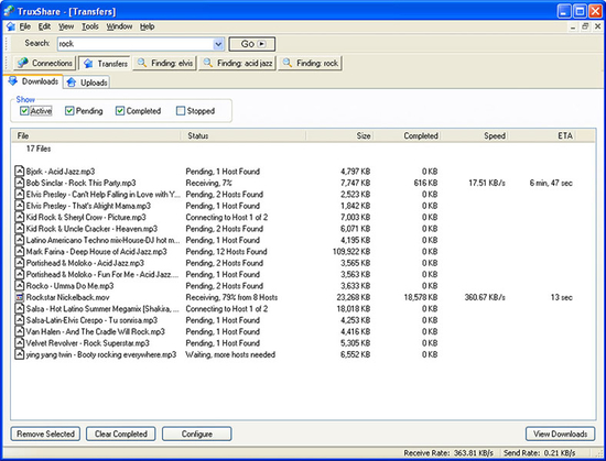 TruxShare is the greatest file sharing program for Windows that let you find and download all kind of files (like .mp3, ogg, wma, wmf, wav, mpg, mpeg, mov, avi, asf, jpg, gif, rm, ...