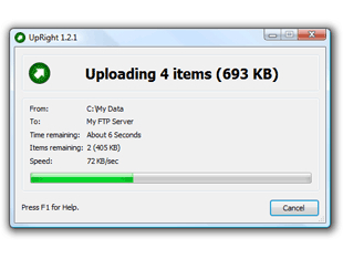Whether you're using Windows built-in FTP support or a stand alone files, uploading multiple files to an FTP server can be a time consuming and error prone process. With UpRight you can store the connection details of an FTP server, then quickly and correctly transfer files and directories to that server with a single click.
