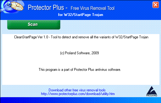cleanstartpage.exe will detect and remove W32/StartPage Trojan completely, from your system. Download the cleanstartpage.exe and save it in a temporary directory. Double click on cleanstartpage.exe to execute it. Follow the user-friendly instructions to detect and remove the W32/StartPage Trojan from your computer.