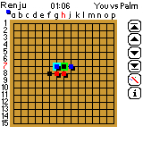 Renju is simple and addictive ancient asia's game, roots of renju go back as far as many thousands of years. Game is played between two opponents on a board by making moves with black and white men called stones. One of the players has at his disposal the black stones and the other player has white stones. Both the players must alternately make one move each time. Black (the player with the black stones) begins the game by making a move in the middle of the board. A move consists of the putting of a stone on one of the intersections of the board. Black can not make an overline, a double-four or a double-three.