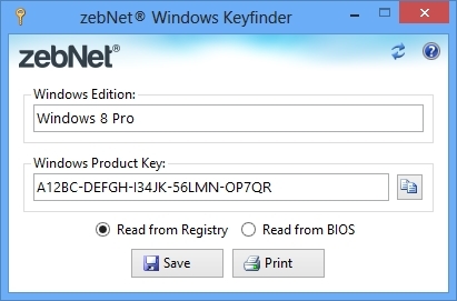 zebNet Windows Keyfinder is a utility that retrieves your Windows Product Key used to install Windows from your registry.